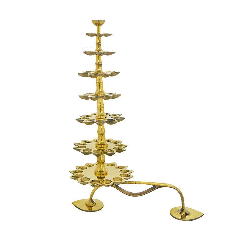 For performing day to day and special Pooja prayers at temples, lamps of different types, sizes and features are used. The 7- step Alankara vilakku/ Adukku vilakku/ Dheepaaraadhana thattu is a highly used pooja accessory in temples and divine places. This beautifully crafted 7-step Brass alankara vilakku is a greatly recommended thanksgiving gift to temples.