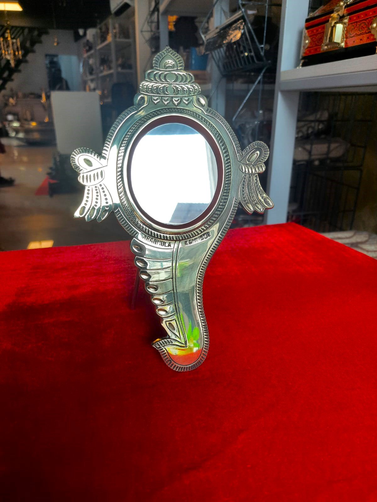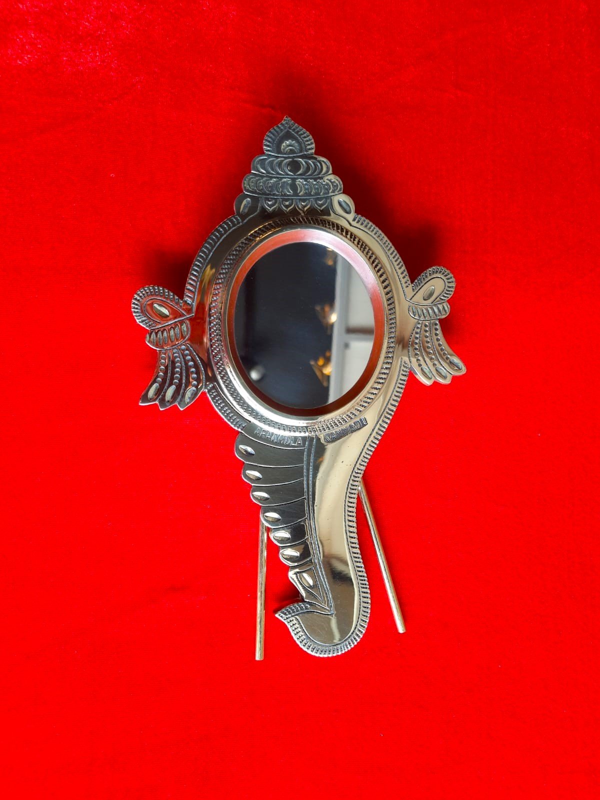 The Aranmula Kannadi has a distinctive and elegant look that sets it apart from other mirrors. It has a polished surface that reflects images with clarity and accuracy, making it a popular choice for use in temples and as a decorative item in homes.