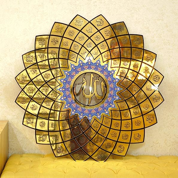 Enhance your living space with the divine elegance of the Asma Ul Husna Arabic Calligraphy 3D - Golden Color wall art decor. This exquisite piece showcases the 99 Names of Allah in a stunning 3D design, intricately crafted with golden color accents. Perfect for adding a touch of spiritual beauty to any room, this artwork is a testament to both faith and artistry. Whether for your home, office, or as a thoughtful gift, this calligraphy piece is sure to inspire and captivate.