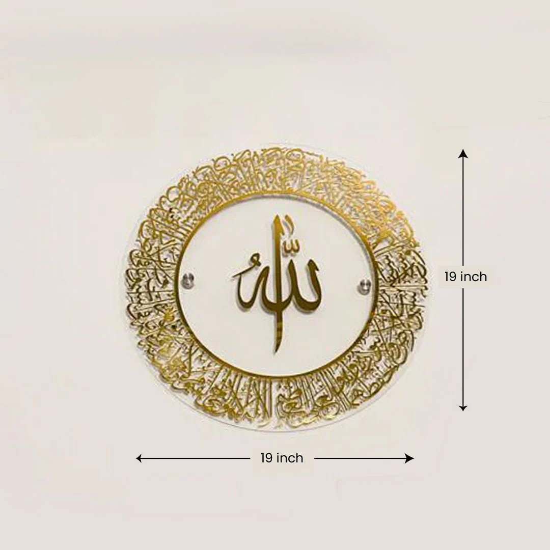 Ayatul Kursi Calligraphy Wall Decor - Clear Base with Gold Lettering | Islamic Quranic Art -19 inch