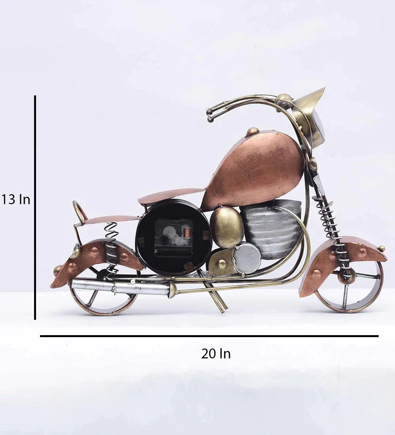 Bring a touch of creativity to your space with this Bike Clock Small – 3” Dial. Designed like a classic motorbike, this unique table clock combines functional timekeeping with artistic design. The 3-inch dial is easy to read and complements the detailed metal structure with a vintage finish.