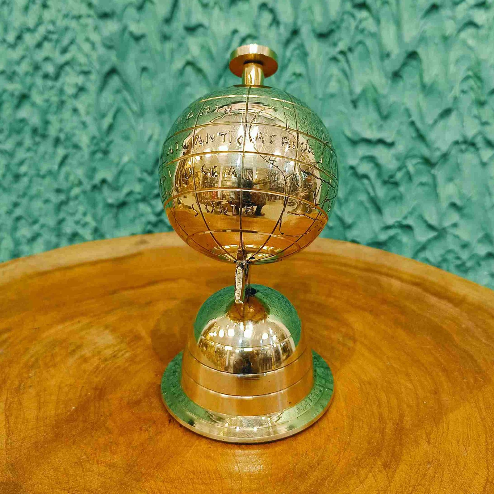 Elevate your space with this elegant Brass Decorative Globe, a timeless piece that seamlessly blends functionality with aesthetic appeal. Perfect for home living rooms, school and college desks, or office tables, this globe serves as both a striking decor item and an educational tool. Its polished brass finish adds a touch of sophistication, making it an ideal gift for loved ones, colleagues, or students. Whether as a showpiece or a functional accessory, this globe complements any setting with its classic charm.