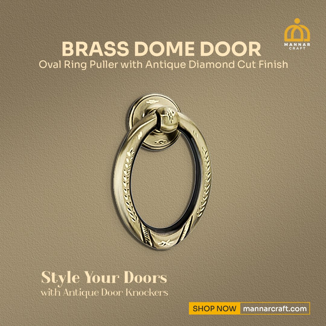 This Brass Dome Door Oval Ring Puller is specially designed and handcrafted by a professional Indian artist. Beautiful Dome Door Oval Ring Puller in brass metal with Antique Diamond Cut Finish perfect for decorative purposes. It can also be used at home and temple doors. Decorate your home and temple door with our stunning-looking Brass Door Knocker.