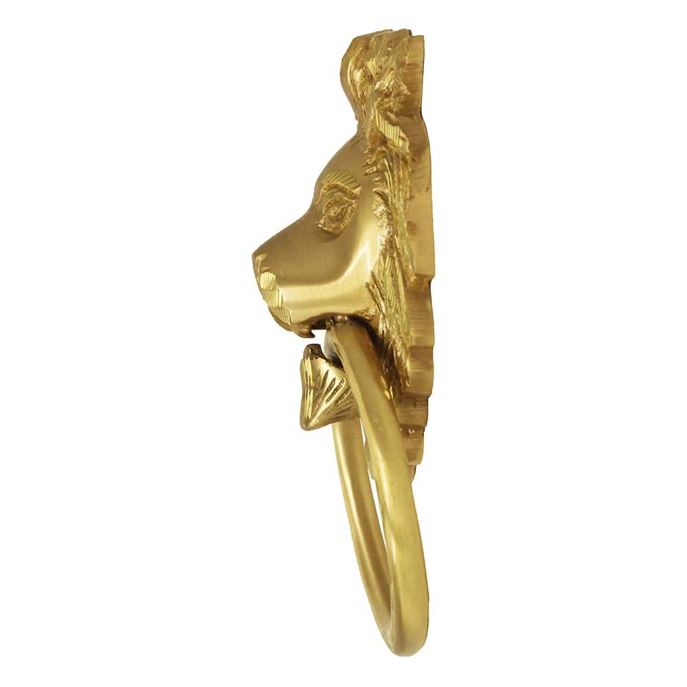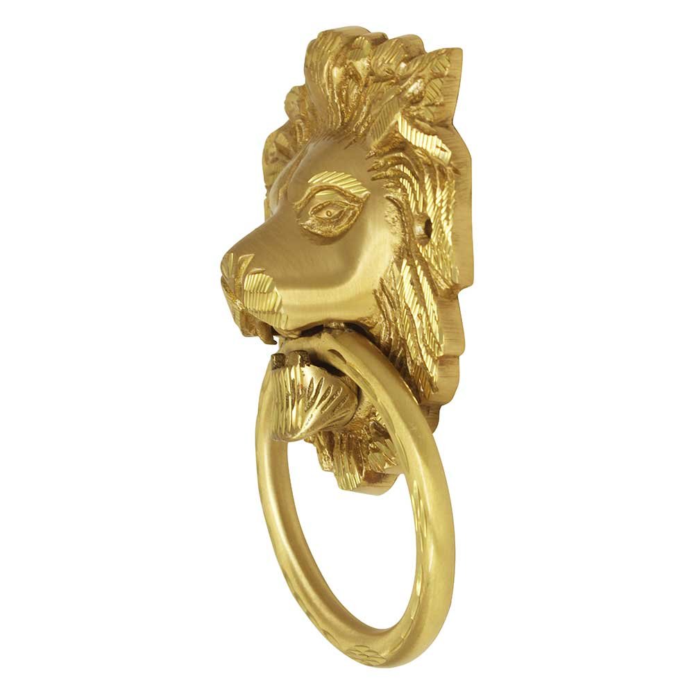 Brass Door Knocker - Lion Face Design - Matt Finish - 7inch Face