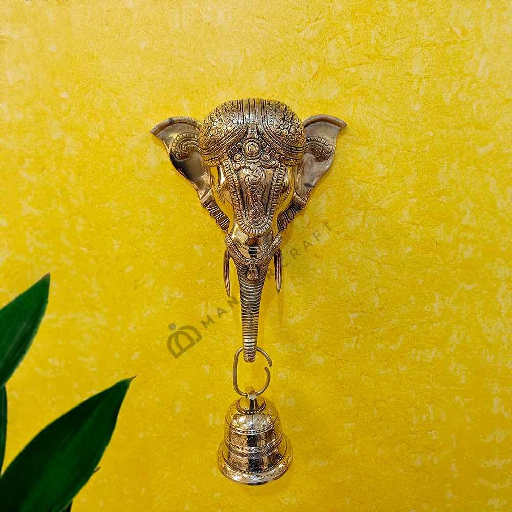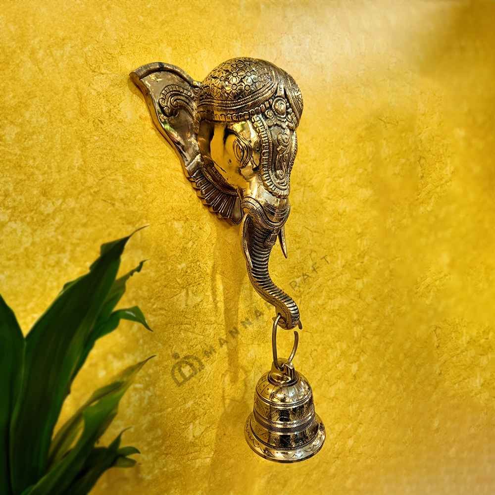 Add a touch of grandeur and symbolism to your home with this stunning Large Glossy Antique Brass Elephant Head Wall Hanging with Bell. This handcrafted piece features a majestic elephant head sculpted from high-quality brass, boasting a beautiful antique finish for a timeless look. The integrated bell adds a touch of charm and can be a lovely accent piece. This elephant wall hanging is perfect for: Living rooms?, Bedrooms, Entryways, Offices.It also makes a thoughtful and unique gift for housewarmings, weddings, birthdays, or any special occasion.