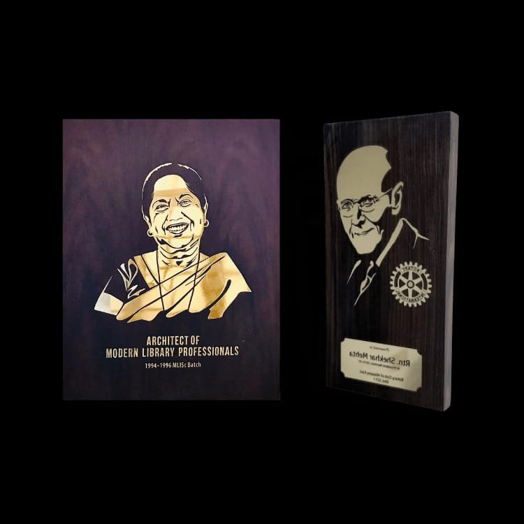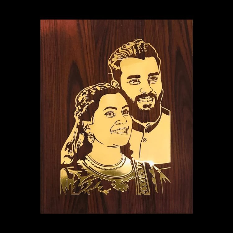 Our team begins by gathering as much information as possible about the portrait in terms of its quality. So that the inlayed portrait live up to the client’s expectation. Our skilled craftsmen will guide you through the design process and help you to choose the wood and inlay materials that magnify your portrait.With begin the project by putting your stories at the heart. This is the point at which the creative process begins. The inlaid design is first sketched out in pencil. The appropriate Inlay material, Brass or whitewood is selected to fill out the pattern once the main outline has been etched in Rosewood or Ebony.With the richness of Ebony or Rosewood, we create one-of-a-kind brass/whitewood inlayed portraits in a matte or glossy finish. Our experts, designers and craftsman work together to create remarkable works of art that delight your aesthetic senses. We deliver the best quality output at just Rs.40/sq.inch rate. Once you make the query, our team will contact you,collect details and will support you till the product reaches your hand.