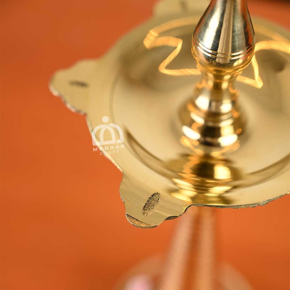 Illuminate your sacred space with the Brass Kerala Nilavilakku with Wicks – 9 Inch, a beautifully handcrafted traditional oil lamp that reflects Kerala's spiritual heritage. Made from high-quality brass, this 9-inch Nilavilakku is the perfect size for daily poojas, rituals, and festive occasions.