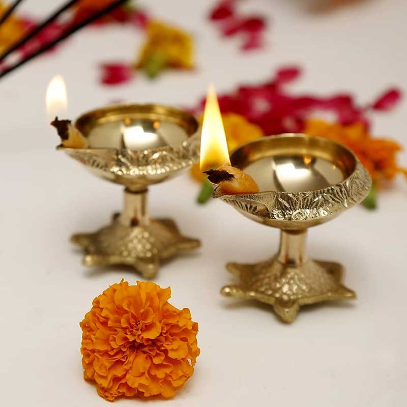 Apart from worship, this diya also serves as a thoughtful return gift, housewarming present, or festive token for family and friends. The elegant engraved design adds a touch of tradition and charm to any setting, making it a must-have for devotees and home decorators alike.