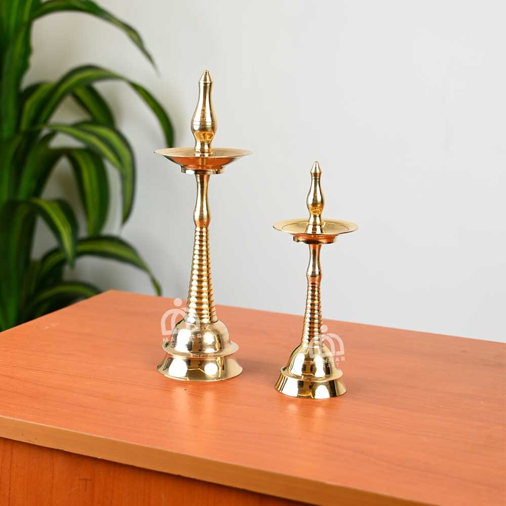 The Nilavilakku is the traditional brass lamp of Kerala. It is used to light the lamp for worship, in the mornings and evenings. Lighting the Nilavilakku on an occasion to mark the beginning and for its success is considered auspicious in Kerala. It can also be used as a welcoming lamp and is a wonderful gift and a traditional souvenir from Kerala.