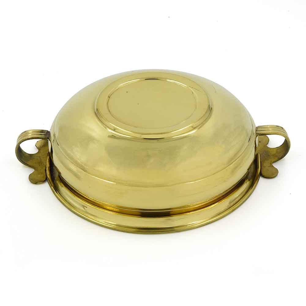• This beautiful brass vessel is an "Uruli". Today, Urulis are very much in demand to lend living rooms or hotel foyers an ethnic feel with flowers or candles floating in them. Made out of the finest quality brass, giving it a rich color and an attractive, sleek shine. This Uruli can be used to place on an altar, displayed empty or filled with water to float candles or flowers