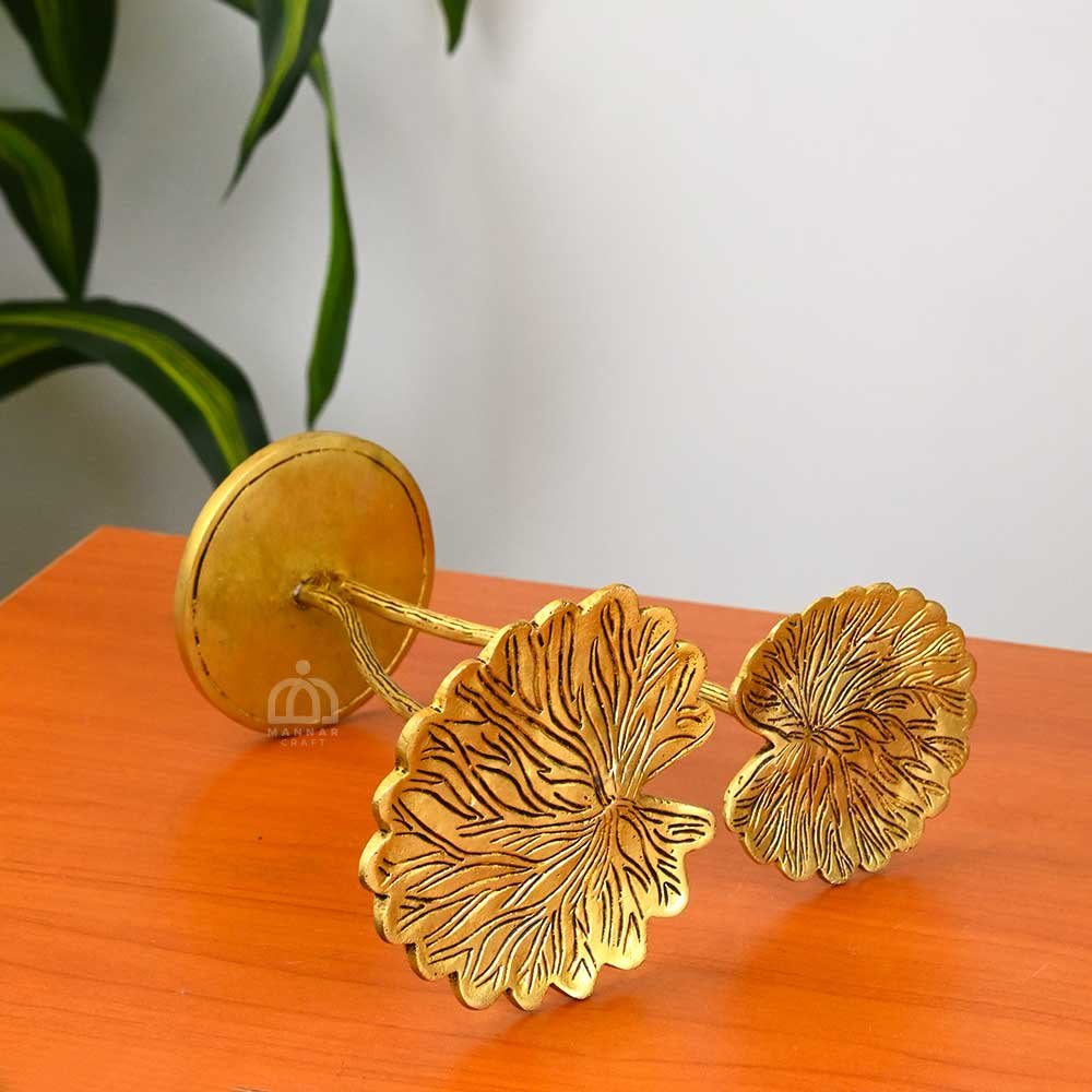 Enhance your interiors with the Brass Lotus Leaf Stand by Mannar Craft, a beautifully handcrafted piece of traditional Indian brass artistry. Weighing 1 kg, this sturdy stand features a lotus leaf-inspired design, symbolizing purity, divinity, and spiritual awakening.