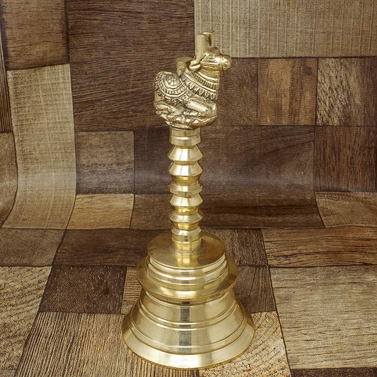 Ghanti or bell is an integral part of daily prayer in every household. This brass bell produces longer strains of clear sound when you ring them. Puja bell is one of the spiritual item made of brass, important for during for puja. A tiny Nandi statue on top of this Indian temple bell makes it look more amazing. This brass bell is about 3 inches in length.This Nandi design bellgivesgolden astonish look andmade for the puja needs.This one mostly recommended by the people for a peaceful lifereduces obstacles in our daily lives.. This ring sound resembles the kind of music and enters with happy starting of life. This sound makes to happy the children in the home. reduces obstacles in our daily lives.