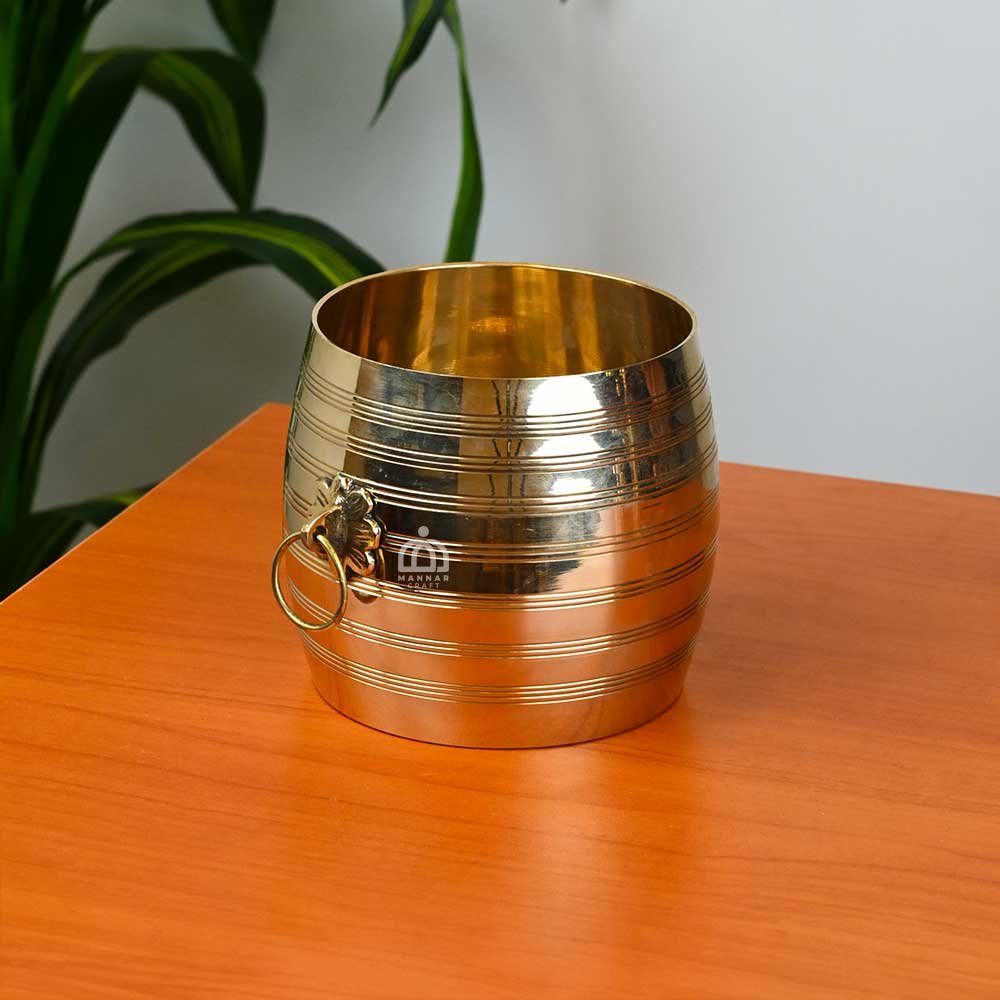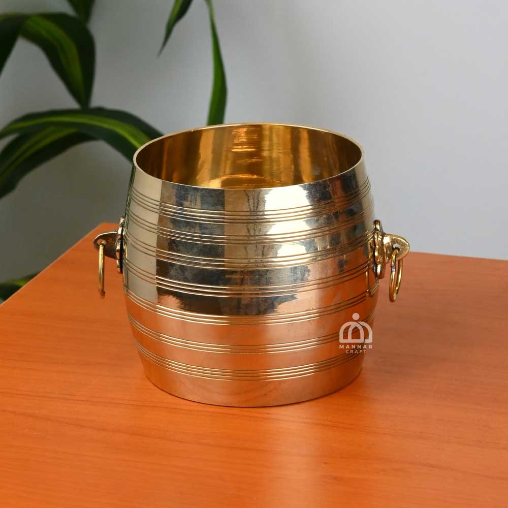 This traditional Brass Para is a beautifully crafted measuring vessel, originating from the rich cultural heritage of Kerala, India. This brass para is designed for both home decor and traditional rituals. It is the perfect choice for anyone who wants to add a touch of tradition to their home. With its intricate design and rich brass finish, this measuring vessel will make a stunning addition to any room. It is an excellent choice for storing and measuring rice, grains, and spices in traditional kitchens. Use it to add a touch of history to your cooking, or as a timeless piece of decor in your home. This brass para is a must-have for those who appreciate the authentic, traditional artistry of India.