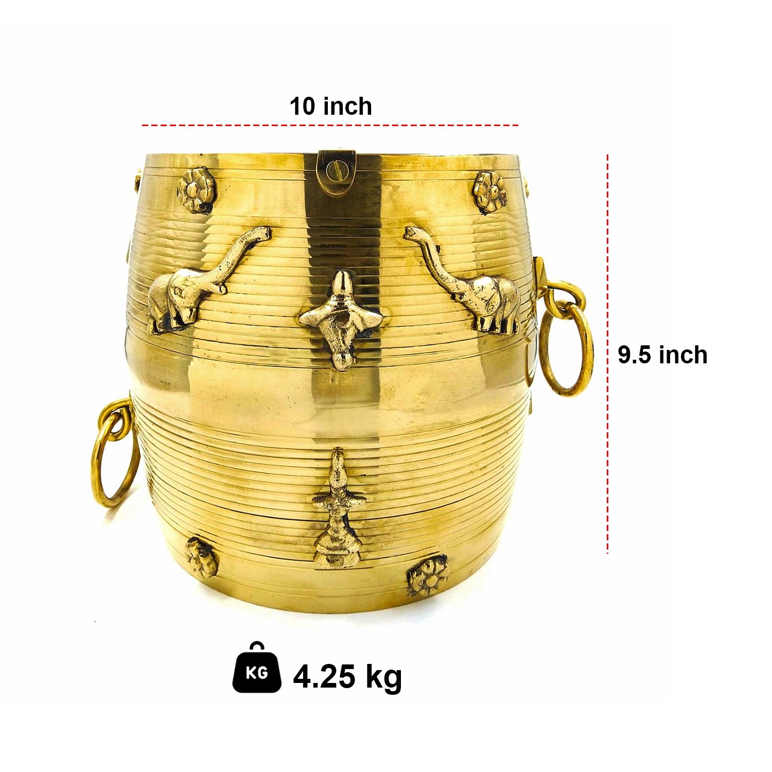 This traditional Brass Para is a beautifully crafted measuring vessel, originating from the rich cultural heritage of Kerala, India. This brass para is designed for both home decor and traditional rituals. It is the perfect choice for anyone who wants to add a touch of tradition to their home. With its intricate design and rich brass finish, this measuring vessel will make a stunning addition to any room. It is an excellent choice for storing and measuring rice, grains, and spices in traditional kitchens. Use it to add a touch of history to your cooking, or as a timeless piece of decor in your home. This brass para is a must-have for those who appreciate the authentic, traditional artistry of India.