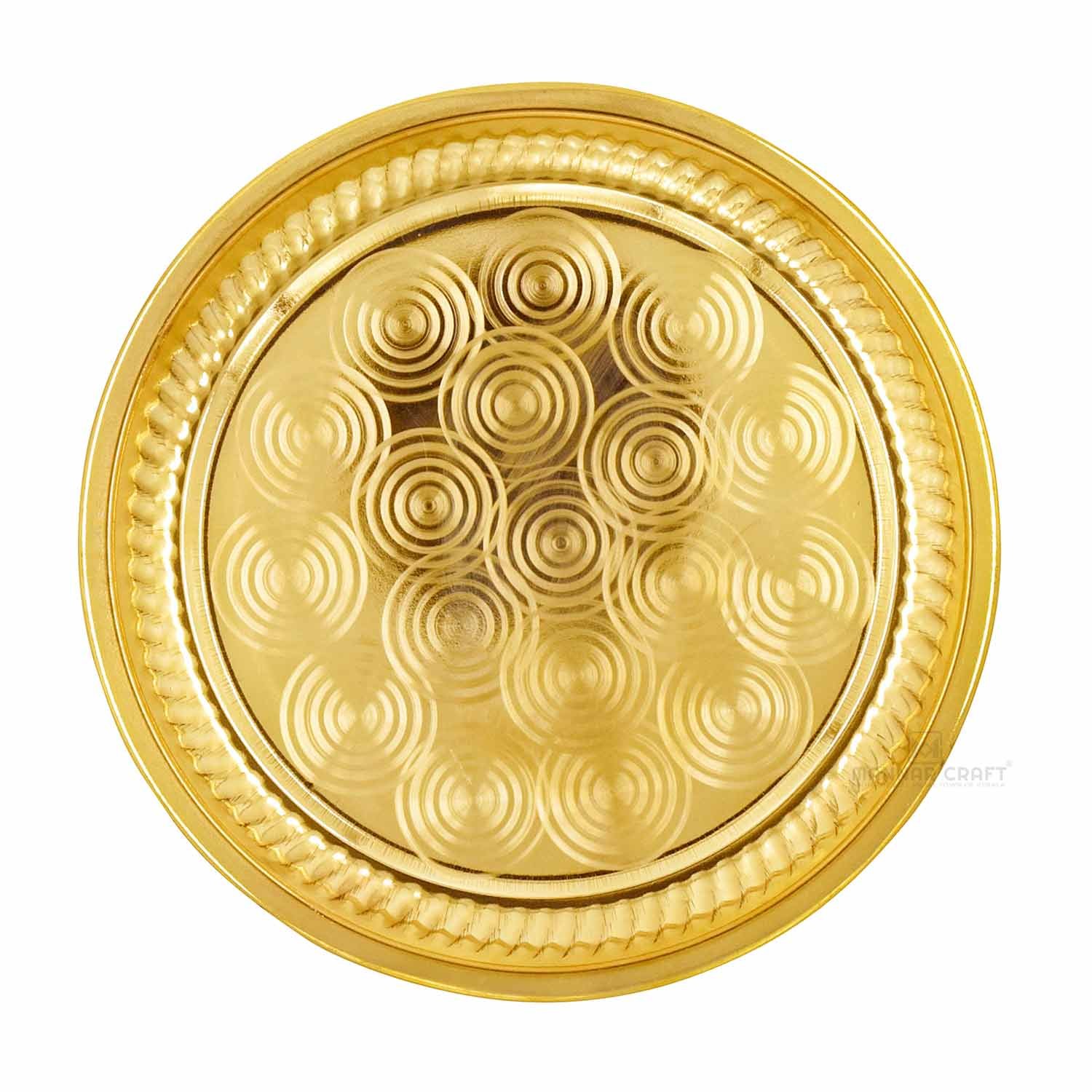 If you're searching for Indian decor to add something unique to your home, the Brass Puja Thali can easily be used as a display piece. The presence of the embossing makes this piece more of a ceremonial decoration. It may be filled with and placed at a temple in a home as a part of puja or prayers. You can display the thali platter on a plate stand on a shelf or table and share some of the beauty and spirituality of Hindu religious practices with your friends and family.