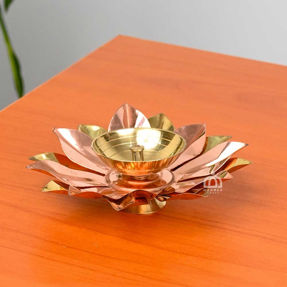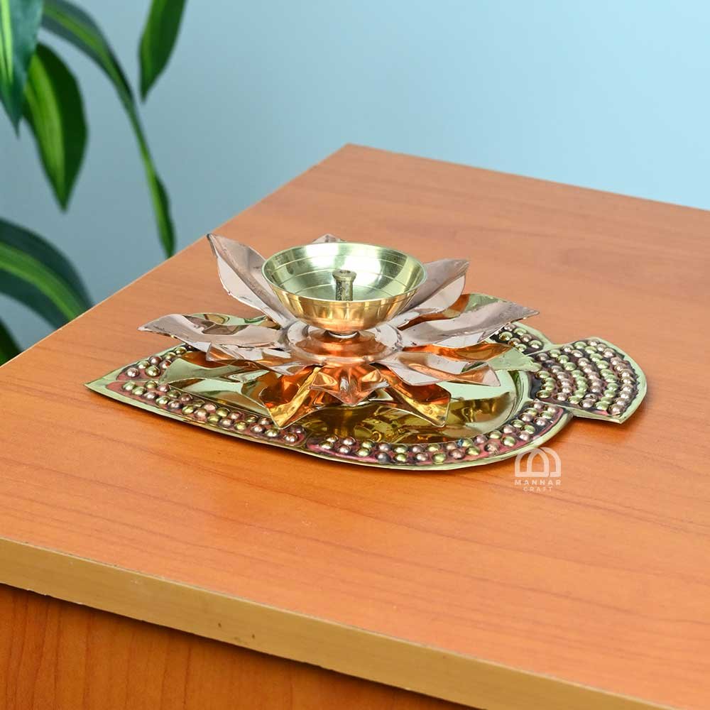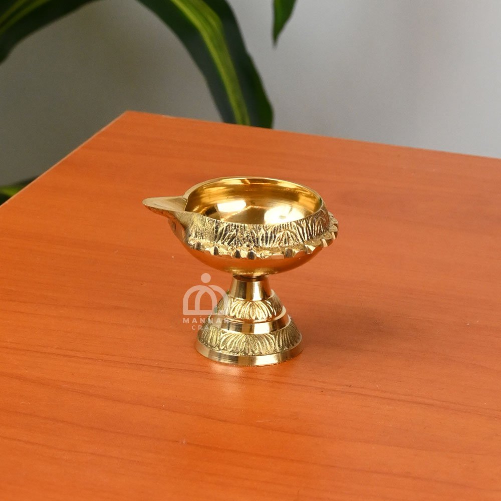 Made from solid brass, the diya is durable, long-lasting, and easy to maintain. The built-in stand ensures stability, making it safe to place in pooja rooms, temples, or as part of festive decorations.