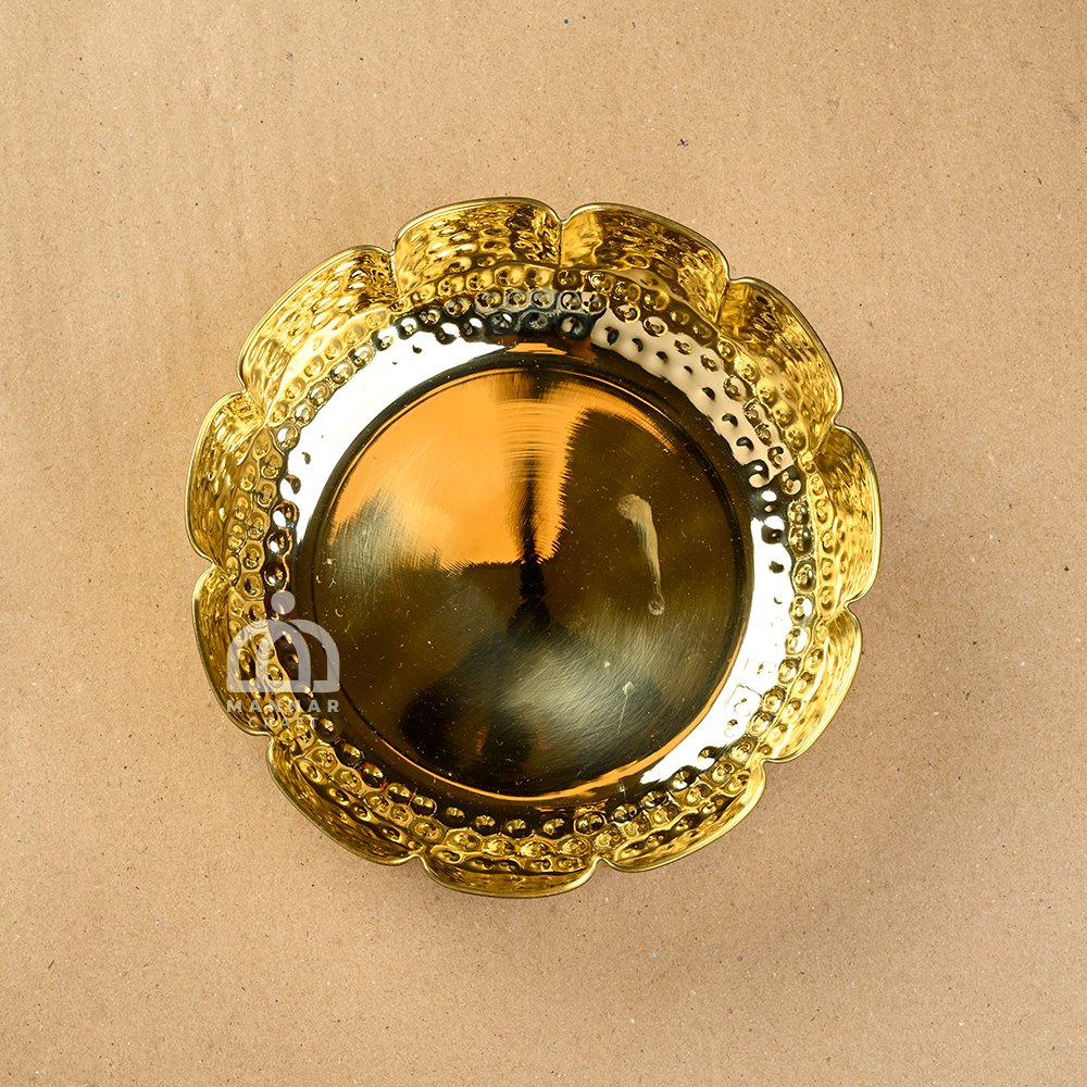 Made from premium brass sheet, this uruli is designed in a lotus flower shape, symbolizing purity, prosperity, and positivity. Its 9-inch size makes it ideal for both compact and medium spaces, serving as a perfect table centerpiece, pooja room accessory, or office decor accent.