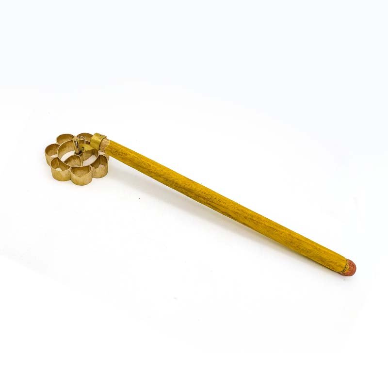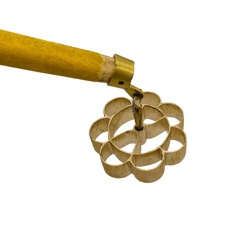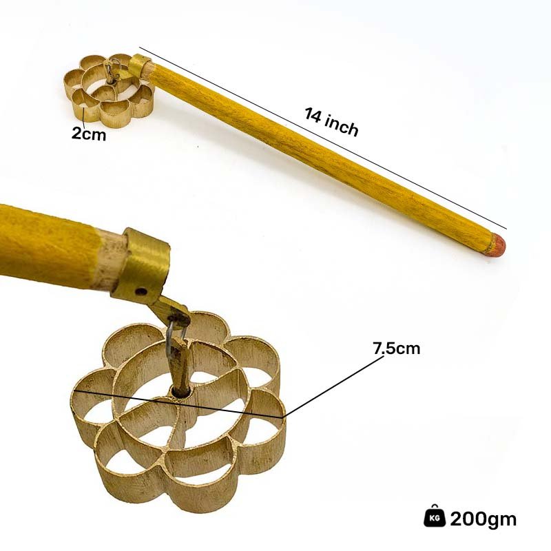 • Traditional handmade fine finished bronze Achappam Mould with long wooden handle.