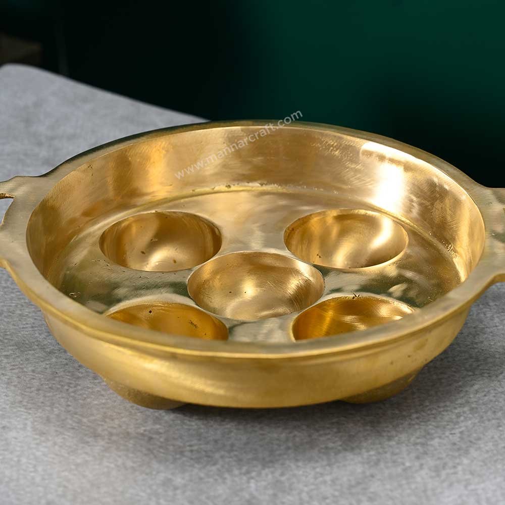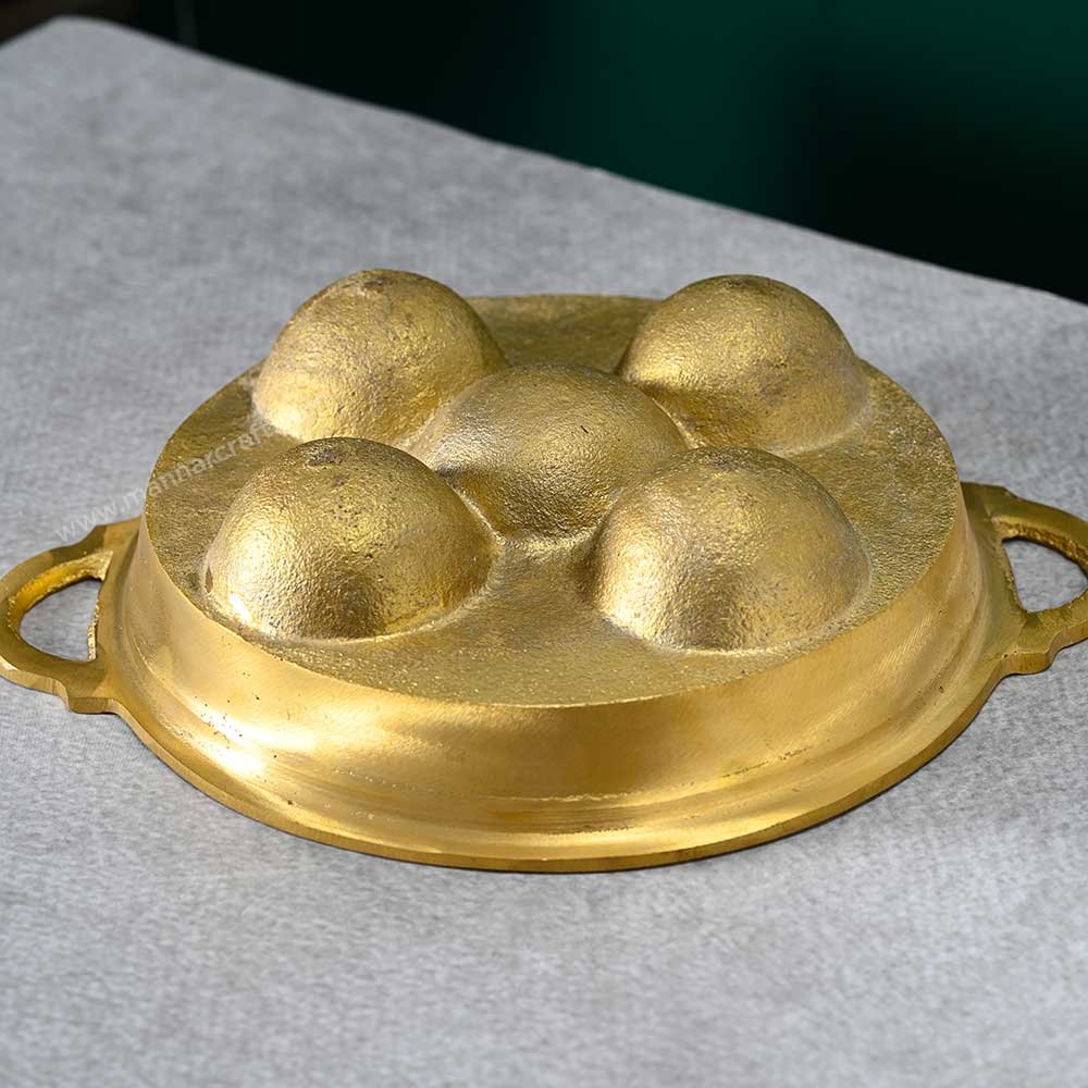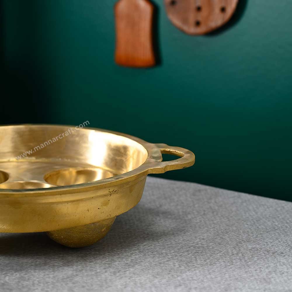 Mannar Craft Bronze Paniyaram Pan. Handcrafted with precision, this premium bronze cookware is designed for making the perfect unniyappam, appam, and more. The traditional unniyappam chatti design ensures your delicacies are infused with the authentic flavors you love. Mannar Craft, known for its commitment to preserving traditional craftsmanship, brings you a pan that not only adds a touch of tradition to your kitchen but also delivers exceptional performance. The even heat distribution and non-stick surface make cooking a delight, while the ergonomic design ensures ease of use. Versatility is key – use this bronze pan as a paddu maker for various delights like ponganalu, appam, and paniyaram. Rediscover the joy of traditional cooking with Mannar Craft's range of authentic bronze cookware. |
