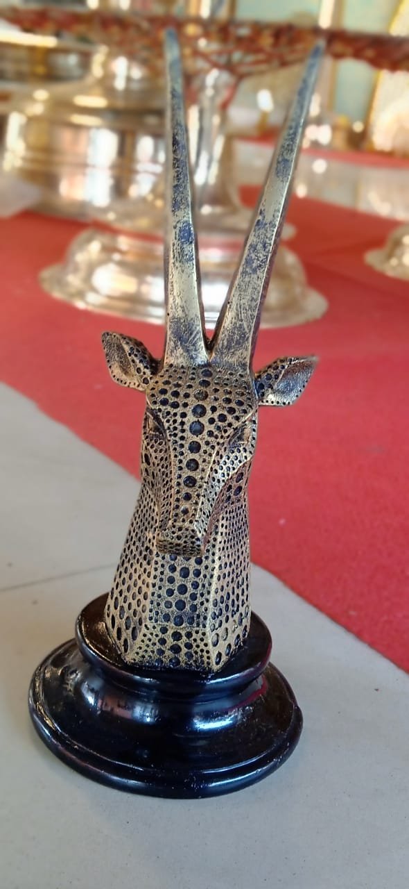 Bring a touch of rustic royalty to your space with the Deer Head Antique Showpiece. Crafted from premium metal and finished in an aged, vintage tone, this elegant décor piece stands 4.5 x 11 x 3.5 inches and weighs 500 grams. With finely detailed antlers and classic craftsmanship, it captures the majestic spirit of nature. Whether placed on a shelf, sideboard, or as part of a themed centerpiece, this showpiece adds sophistication and a touch of wilderness-inspired charm to your home or office.