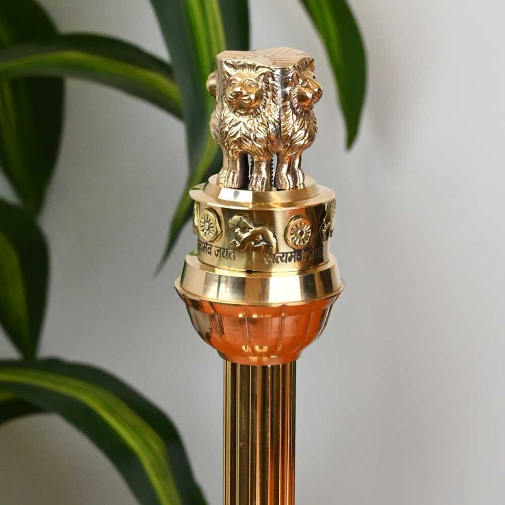 Add a touch of heritage to your space with this exquisite Brass Ashoka Stambh. Inspired by the national emblem of India, this pillar statue is crafted with high-quality brass, providing a lustrous finish and timeless appeal. Perfect for office tables, living rooms, bedrooms, or any area needing an elegant decor element, this Ashoka Stambh exudes a dignified and inspiring presence. It serves as a sophisticated decor piece and a reminder of values such as peace, truth, and integrity, making it an ideal gift or addition to any home or office.