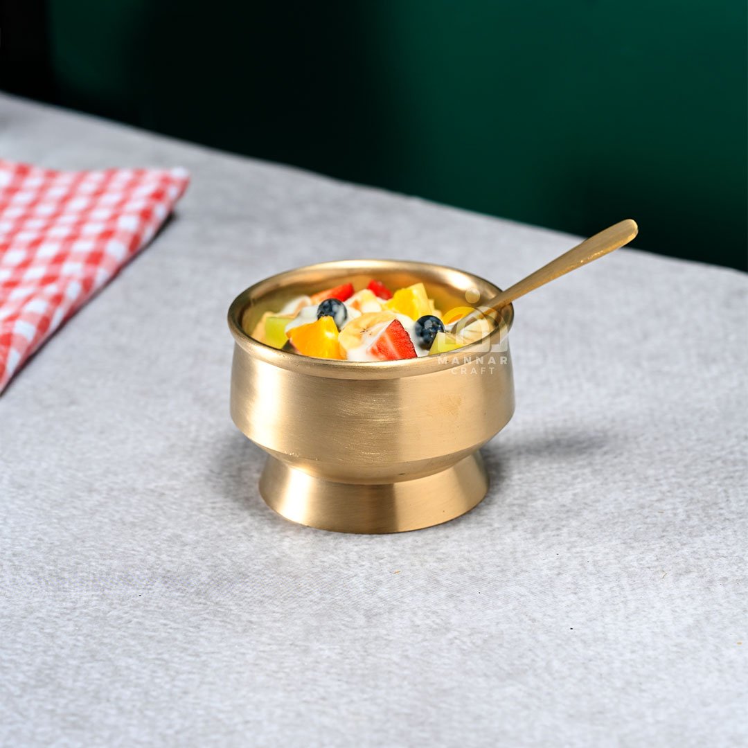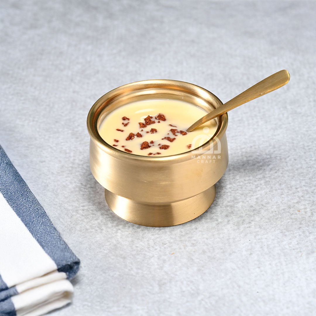 Indulge in luxury dining with our Bronze Ice Cream Cup with Spoon, a timeless addition to your tableware collection. Crafted from high-quality bronze, this cup is perfect for serving ice creams, puddings, and desserts with a touch of sophistication. Its sleek design, accompanied by a matching spoon, elevates any occasion—be it a family dinner or a special celebration. Ideal for gifting or personal use, this set combines elegance with practicality.