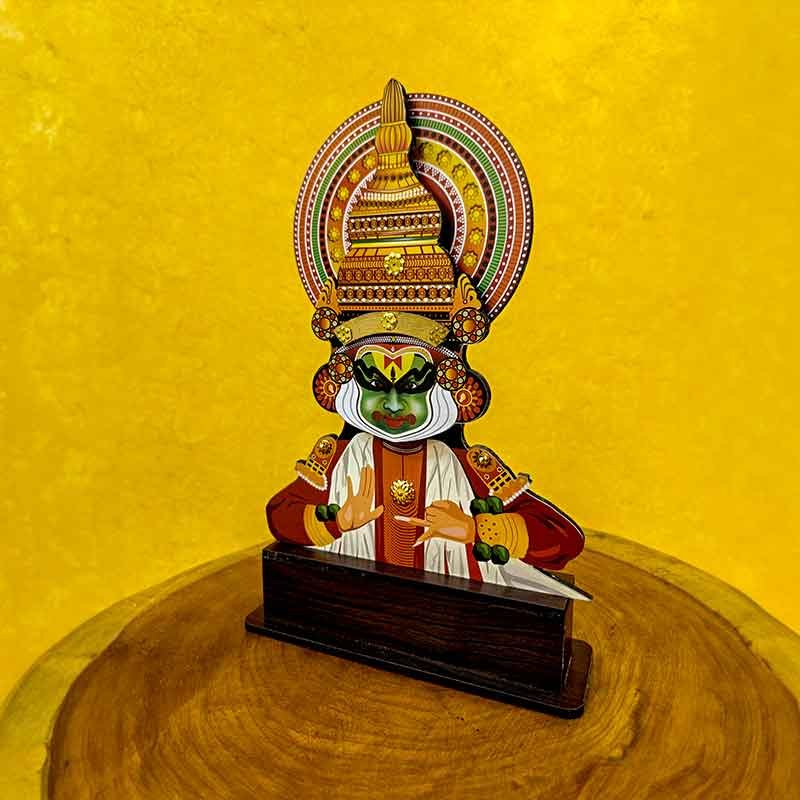Enhance your home decor with the timeless charm of our Elegant Traditional Printed Kathakali piece. Handcrafted by skilled artisans from Kerala, this exquisite art piece captures the vibrant essence of Kathakali, one of India’s most celebrated classical dance forms. The intricate detailing and traditional craftsmanship make this piece a perfect addition to any space, offering both cultural significance and aesthetic appeal. Ideal for home decor, gifting, or as a memorable memento, this Kathakali art piece is a beautiful representation of Kerala's rich artistic heritage.