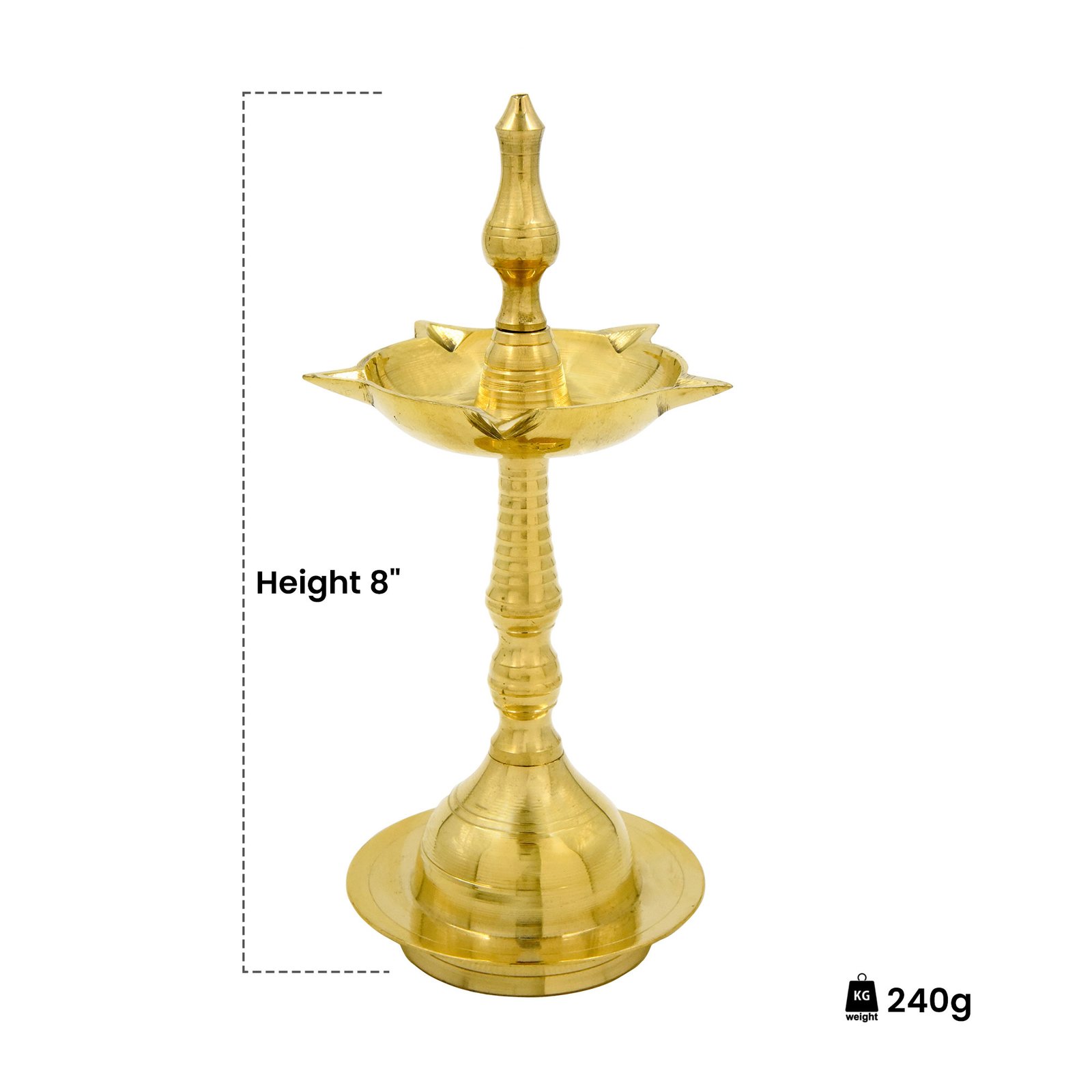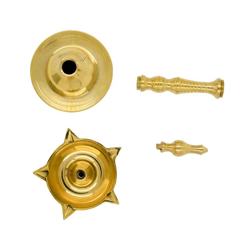 NOTE-Oil should not be poured into the vilaku from its top( Koomb/head).It should be done through any of the sides.Use good quality oil such as sesame or coconut along with a cotton wick.