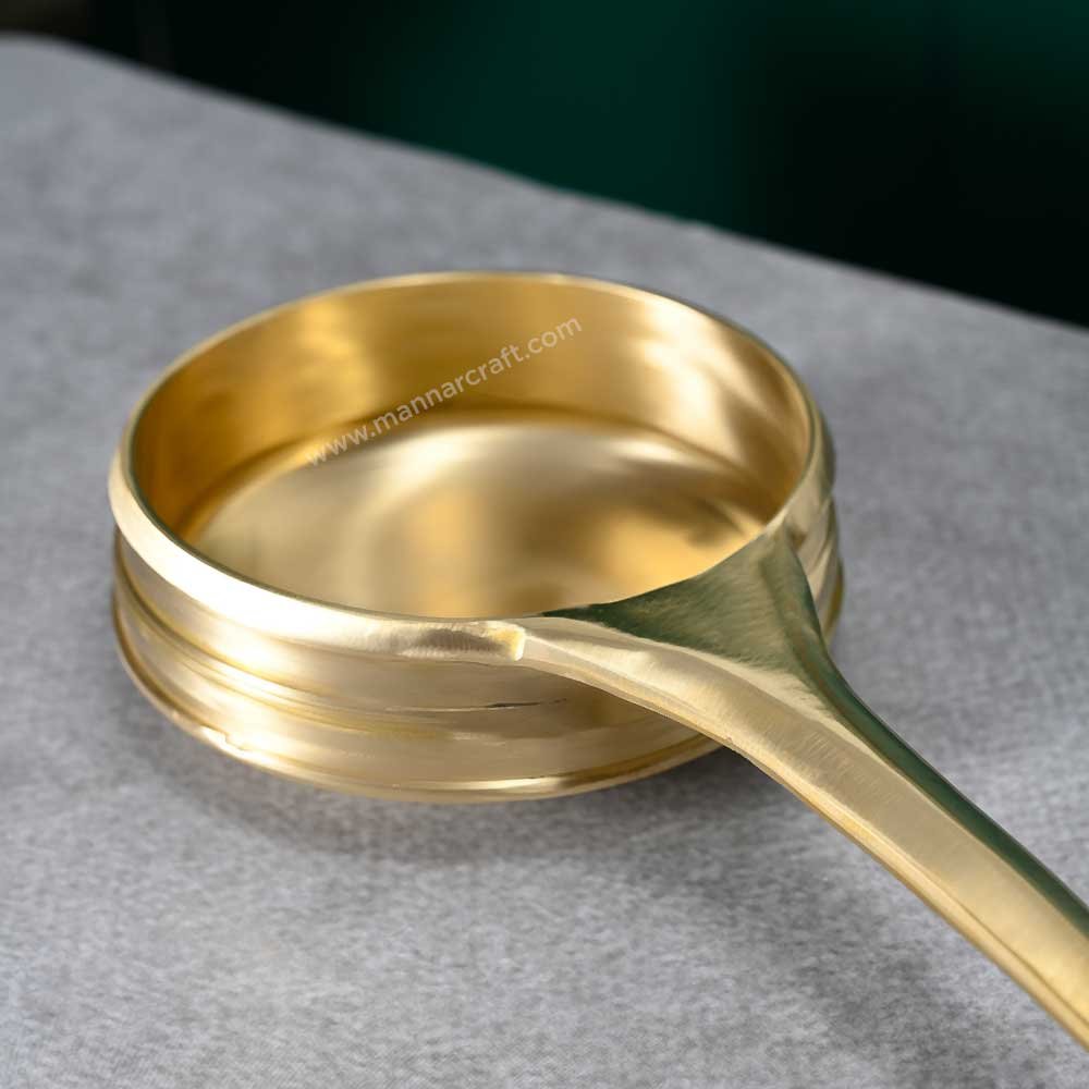 Awaken your senses with the timeless magic of our handcrafted Bronze Tadka Pan (Val Urali). This exquisite cookware, traditionally used for tempering spices, infuses your dishes with deep, aromatic flavors that elevate every meal. Crafted from pure bronze, this tadka pan features a thick, heat-distributing bottom that prevents spices from burning. This ensures perfect "tadka" - the art of releasing essential oils from spices - unlocking the full potential of your culinary creations. More than just a pan, this heirloom piece is a symbol of culture and craftsmanship. Its warm glow adds a touch of sophistication to your kitchen and makes an ideal gift for the discerning cook. Embrace the legacy of bronze cooking with our Val Urali. Experience the difference in taste, tradition, and timeless beauty. |