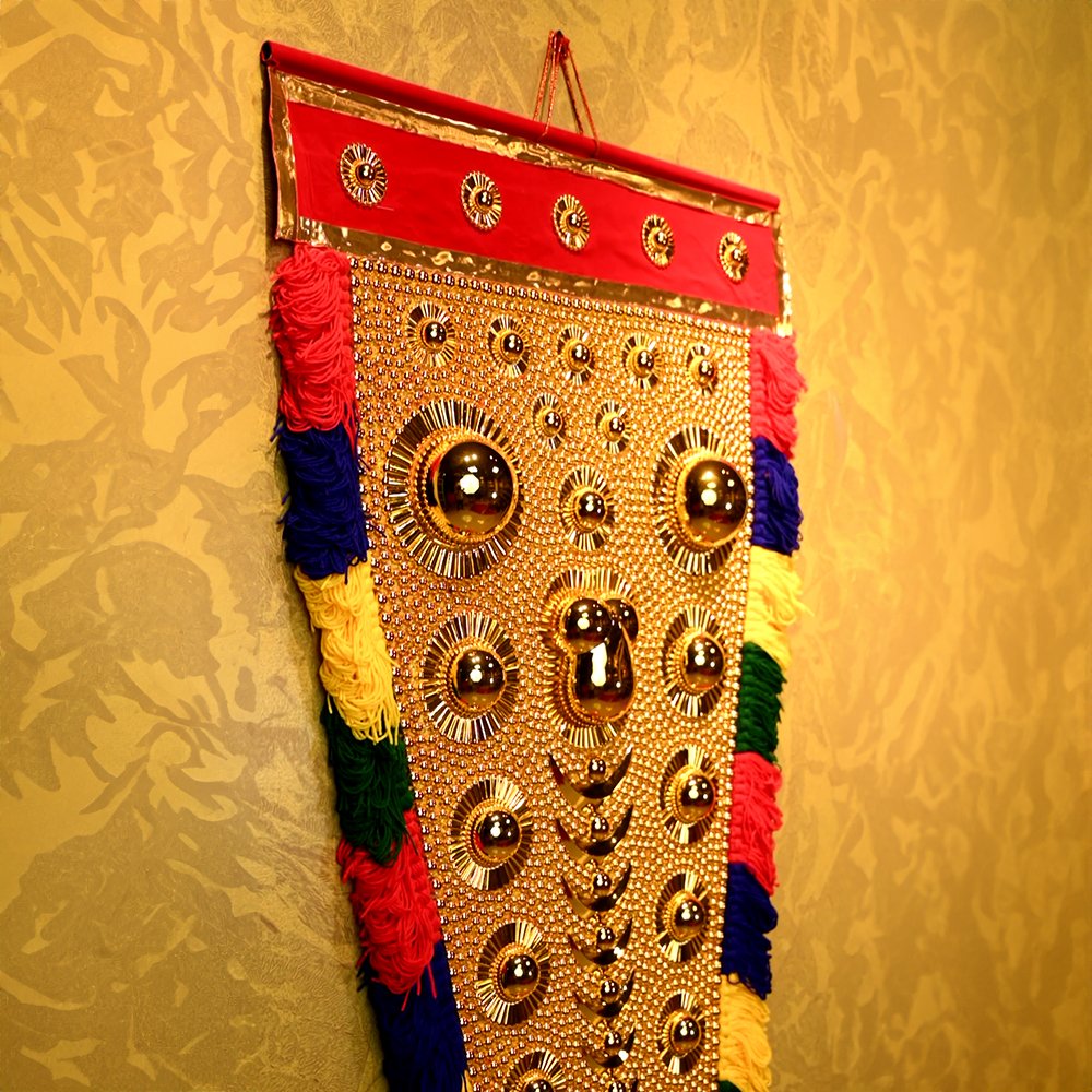 Bring a touch of Kerala's rich cultural heritage to your home with our handcrafted Nettipattam, the traditional elephant caparison. This stunning piece, meticulously crafted by skilled artisans, features intricate designs and vibrant colors