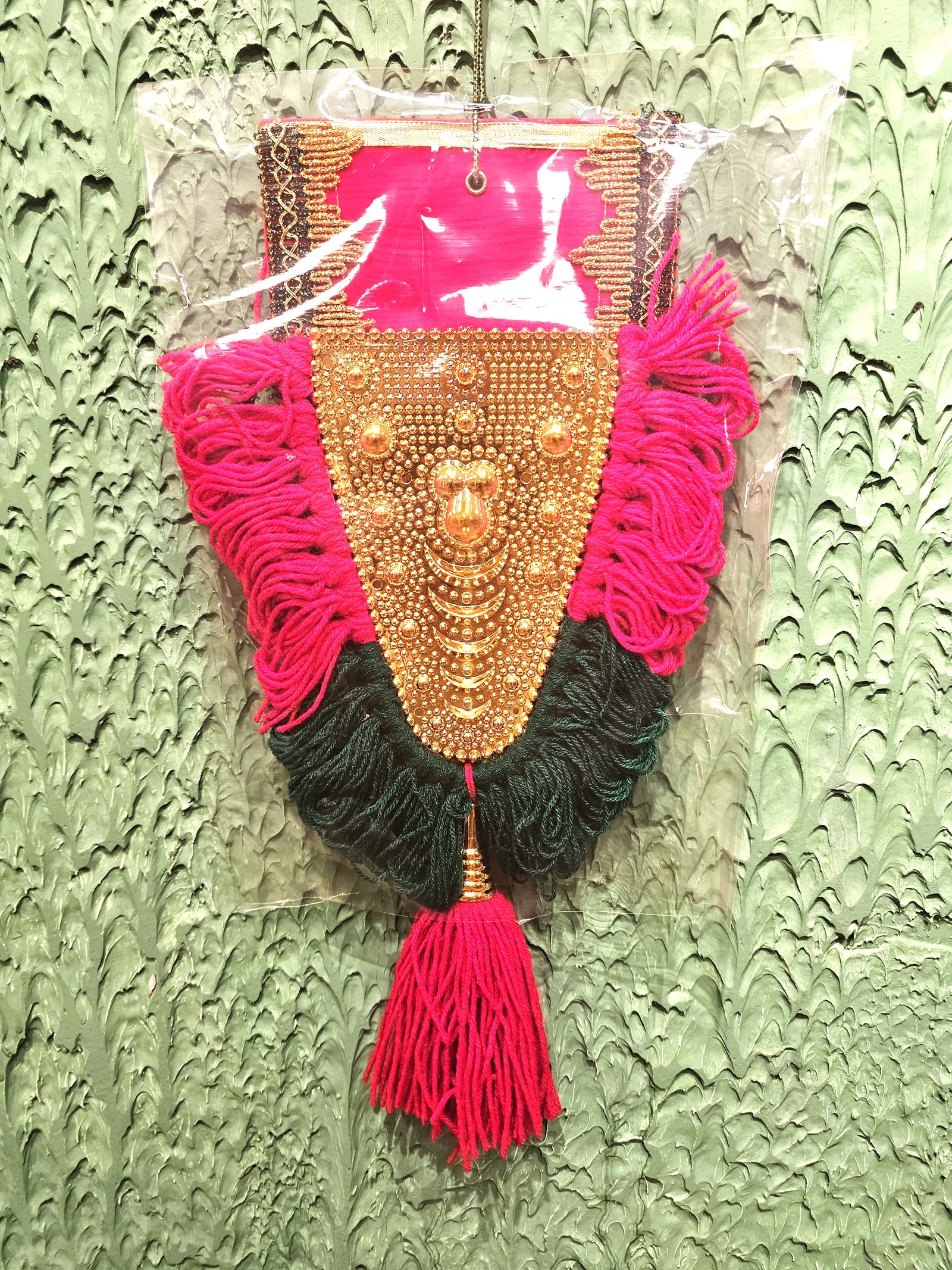 Celebrate the vibrant culture of Kerala with this Handcrafted Traditional Nettipattam (38cm) from Mannar Craft. Traditionally used to adorn elephants during temple festivals like Thrissur Pooram, the nettipattam represents divinity, prosperity, and cultural grandeur.