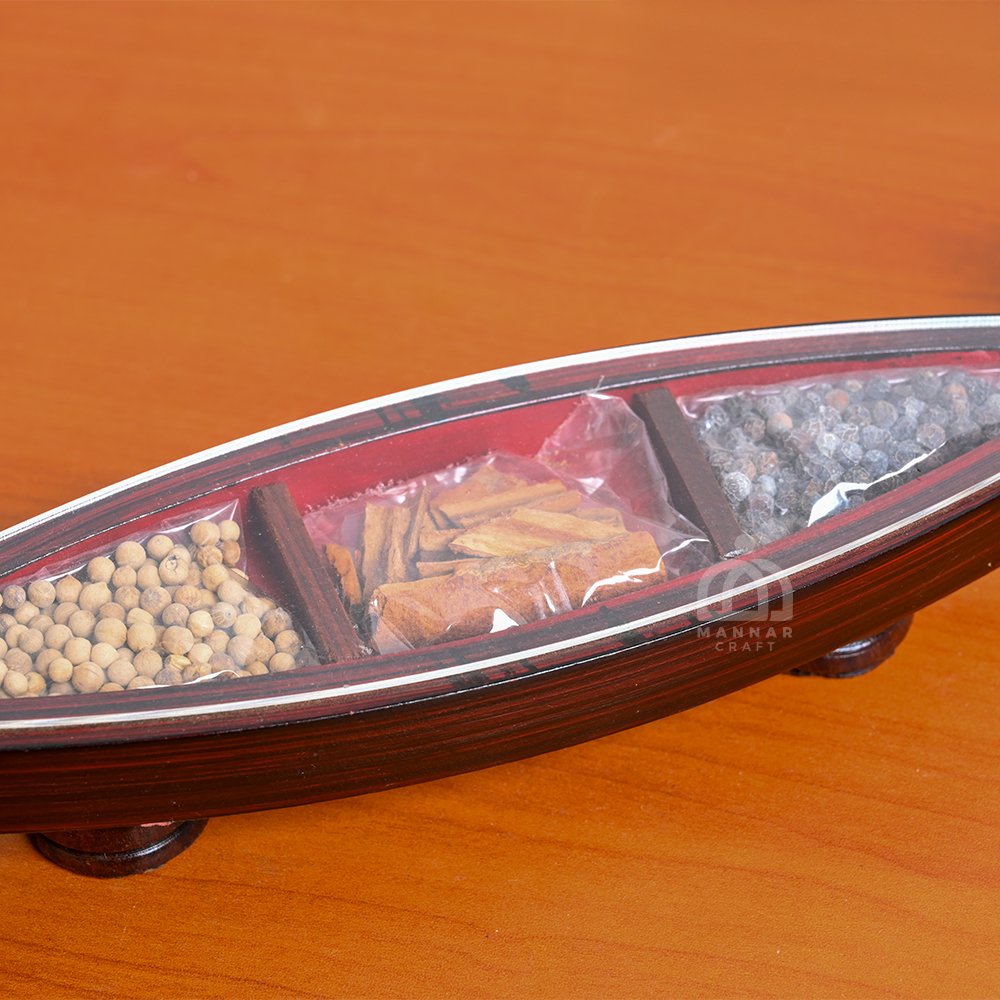 Crafted from high-quality wood, the spice boat features a smooth, polished finish that highlights its natural grain. While originally designed to display whole spices, it is also perfect for potpourri, dry flowers, pebbles, or as an elegant empty accent piece.