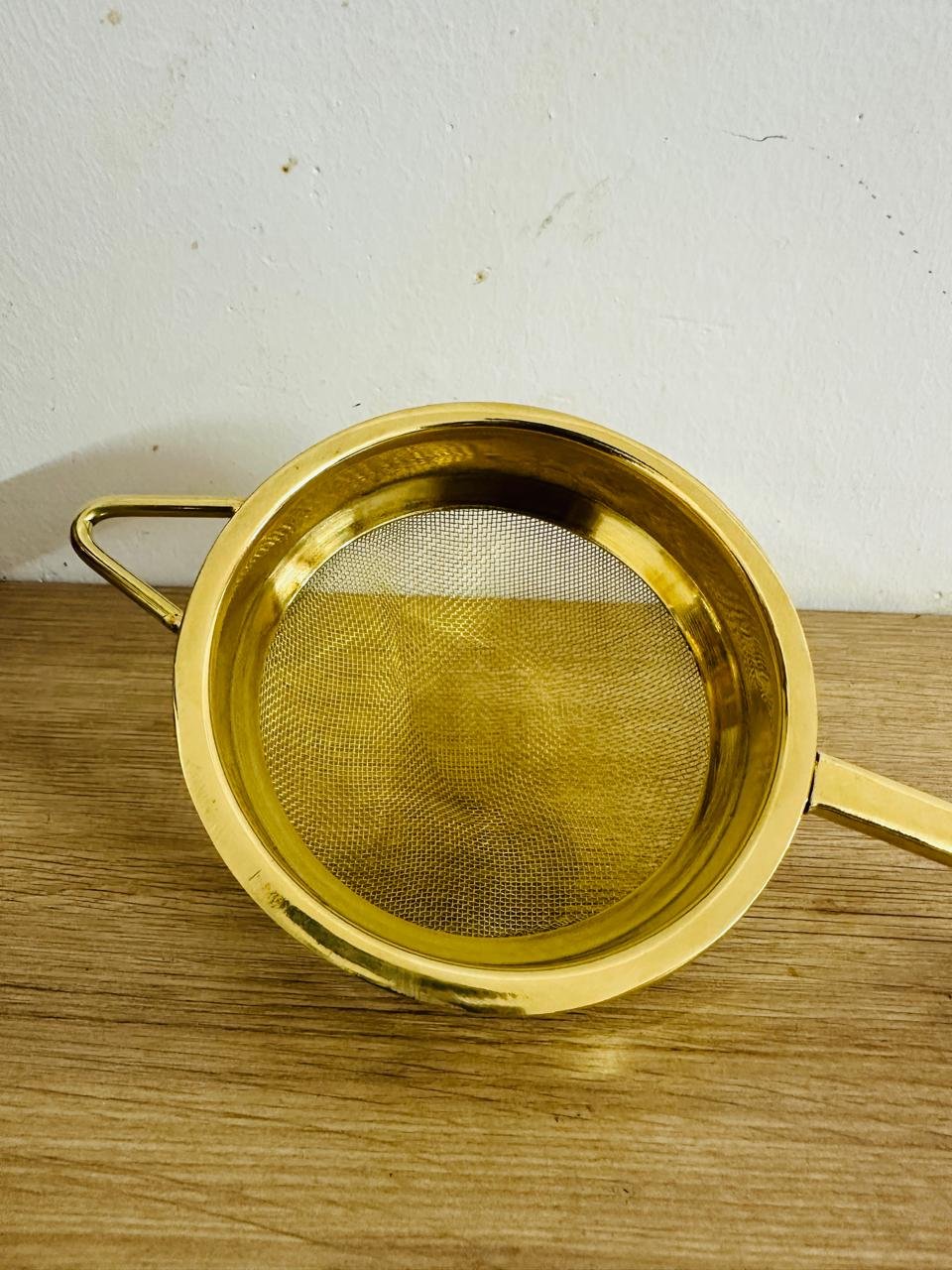 The fine mesh design filters perfectly, ensuring a clean, flavorful cup every time. Whether you are a tea enthusiast or love collecting traditional cookware, this brass tea strainer is both functional and decorative. It also makes a thoughtful gift for tea lovers, homemakers, and those who cherish authentic handmade products.
