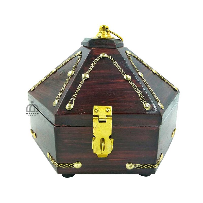 Nettoor Petti, in Kerela, has a historical significance. It was used by women of Royal families to keep their jewels and precious gems. It is also called Amadapetti. It has beautiful designs and carvings on it. Handcrafted to perfection. Made by skilled craftsman. A traditional and royal item. A perfect gift on birthdays, anniversaries and housewarming parties!