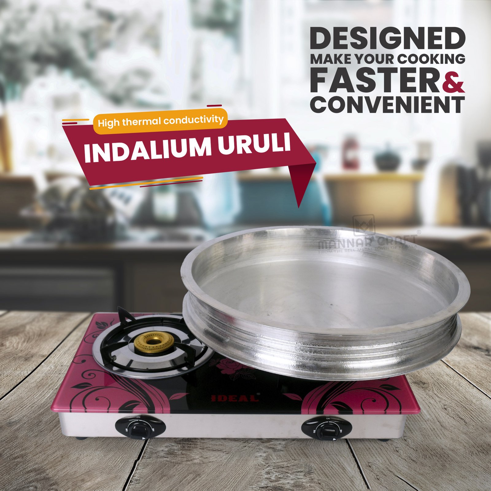 •Material-Indalium ;41 x 41 x 6 cm; 3 Kilograms •Uruli made in indalium ( casted aluminium) is commonly used for cooking,serving food, and also for small scale cooking like preparing side dishes like chicken,beef roast and sweets like payasam •99.5% Pure Aluminium.Scratch resistant,Easy to handle.Heavy anti bulging base,High thermal conductivity