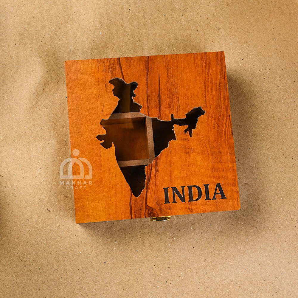Celebrate the spirit of India with this beautifully handcrafted India-Shaped Wooden Spice Box from Mannar Craft.  this  spice organizer  perfect for storing spices, dry fruits, herbal mixes, jewelry, or even office essentials.