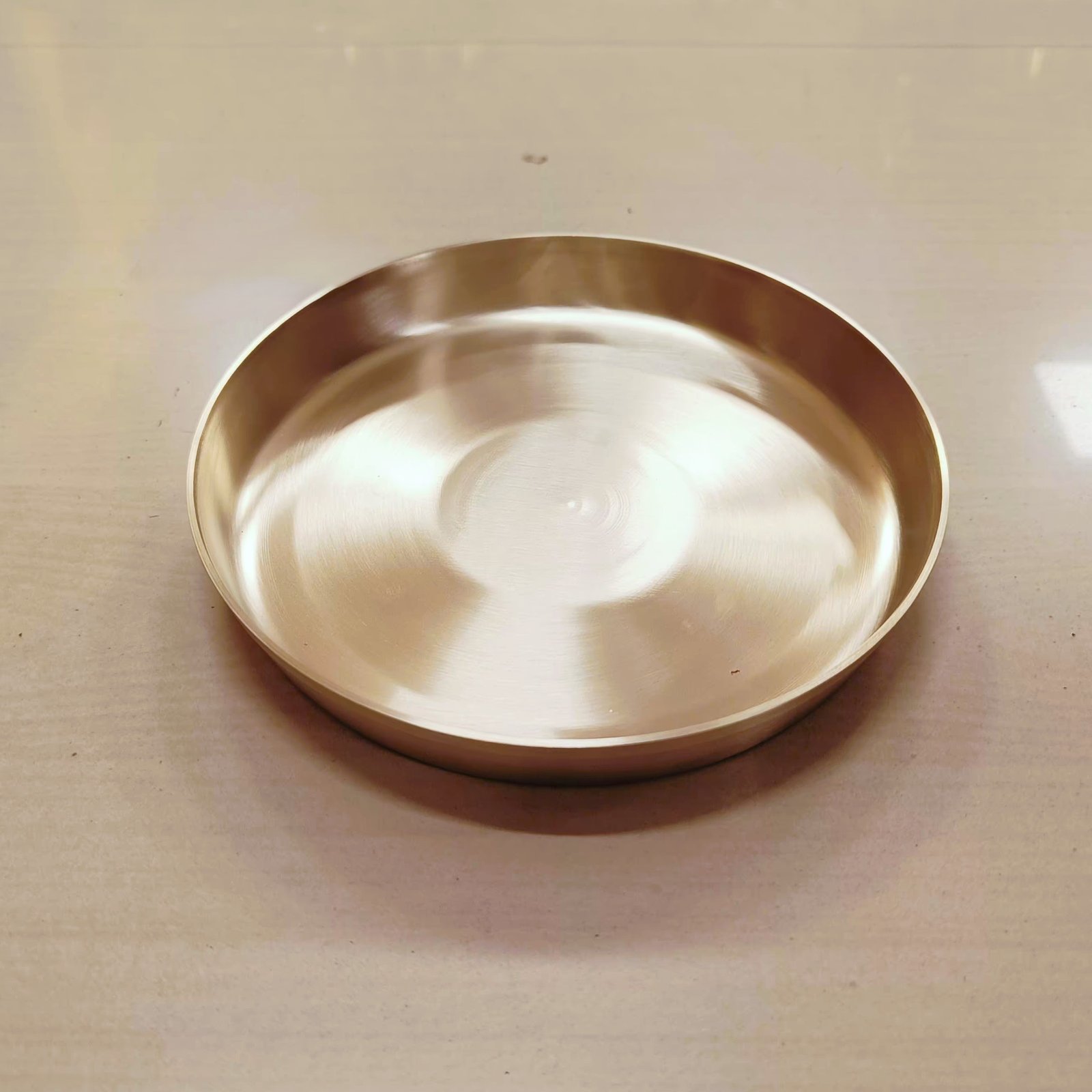 Elevate your dining experience with our Kansa Round Plate with Raised Edge - Matt Finish - 10 Inch. Handcrafted from pure bronze (Kansa), this beautiful plate features a subtle matt finish and a thoughtfully raised edge to keep food securely in place. Perfect for everyday meals or festive occasions, Kansa plates are known for their Ayurvedic health benefits, promoting better digestion and holistic wellness. Its timeless, minimalist design makes it a wonderful addition to any kitchen or table setting. Durable, elegant, and eco-friendly, this plate is ideal for those who appreciate the beauty of traditional Indian craftsmanship.