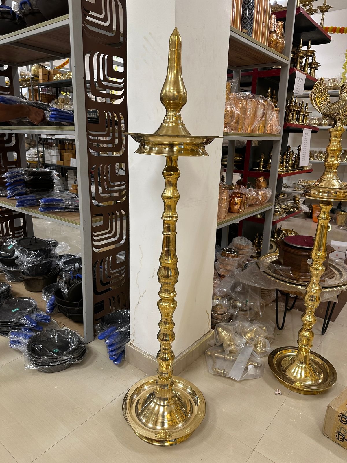 Bring home the timeless elegance of tradition with this 5 Feet Kerala Brass Nilavilakku – a stunning piece of craftsmanship that represents cultural heritage and divine light. Handcrafted from premium-quality brass, this tall traditional oil lamp is not only a spiritual centerpiece but also a luxurious decor item. Whether you’re adorning your home, office, or looking for a meaningful gift, this Nilavilakku is the perfect choice. Commonly used in South Indian households and temples, it’s an auspicious addition that adds grace and serenity to any space.