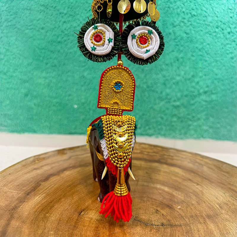 Kerala Handcrafted Wooden Elephant Pooram Festival Sculpture For Decor & Gifting - 4 inch