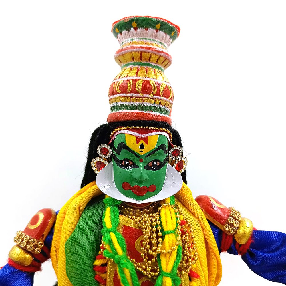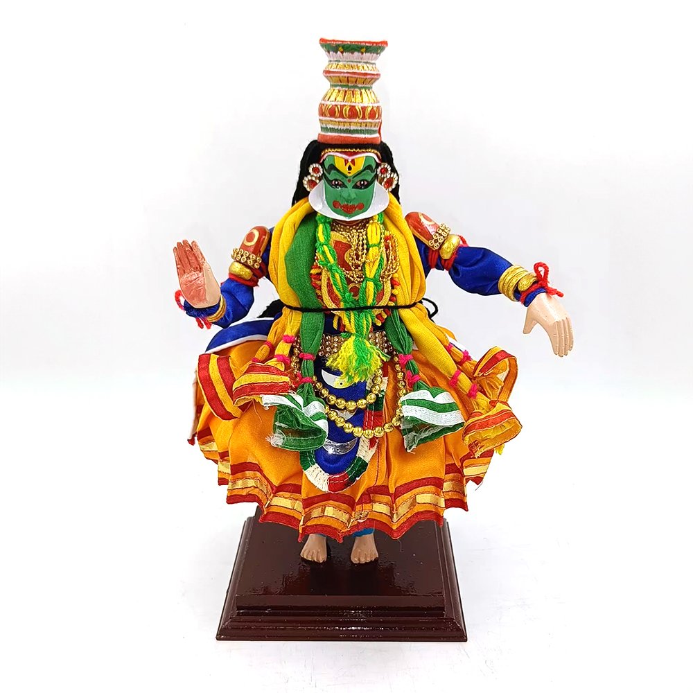 Introducing the exquisite Kathakali statue from Mannar craft, handcrafted with precision and care from the finest Kumbil wood. This stunning statue captures the essence of the traditional Indian dance form, with intricate details and beautiful colors that make it truly unique.