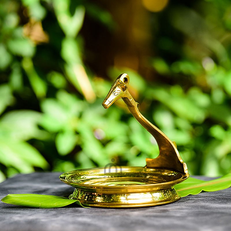 Kerala traditional brass oil horse lamp is an example of our rich ancient tradition which is of exceptional beauty and technique.KuthiraVilakku is a hanging oil lamp with a horse head as its most prominent design feature. The lamp is engineered to ensure that whichever direction the lamp is turned, it will return to its original position. It also remains horizontal, thus ensuring that no oil is ever spilt. and makes it suitable for outdoor usage where it may be exposed to wind.