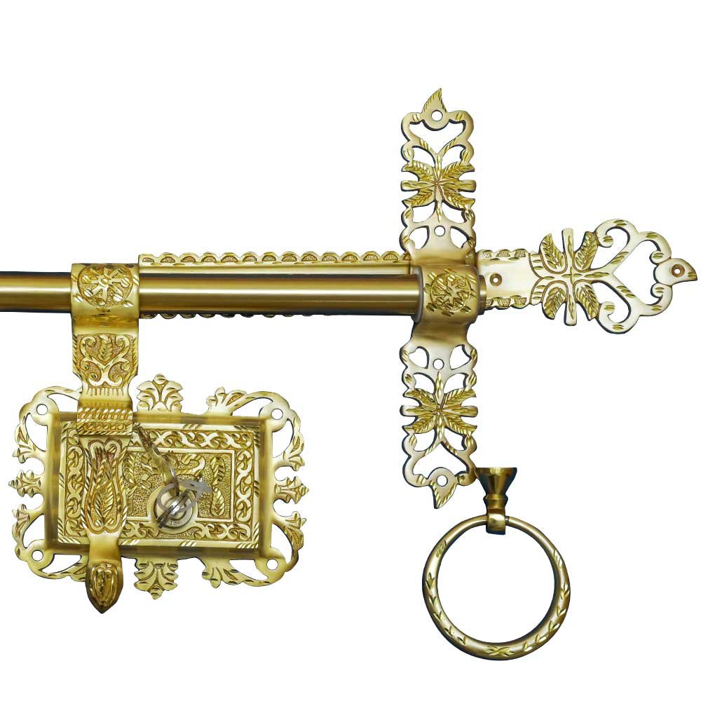 A complete set of Manichitram consists of the following, Head, handle, Crams, Main Lock, Ring Puller, Side Patta, Dooms, 2 Keys, and a wide rod with variable length sizes. The complete setup fulfills every need, from providing to accessorizing the door