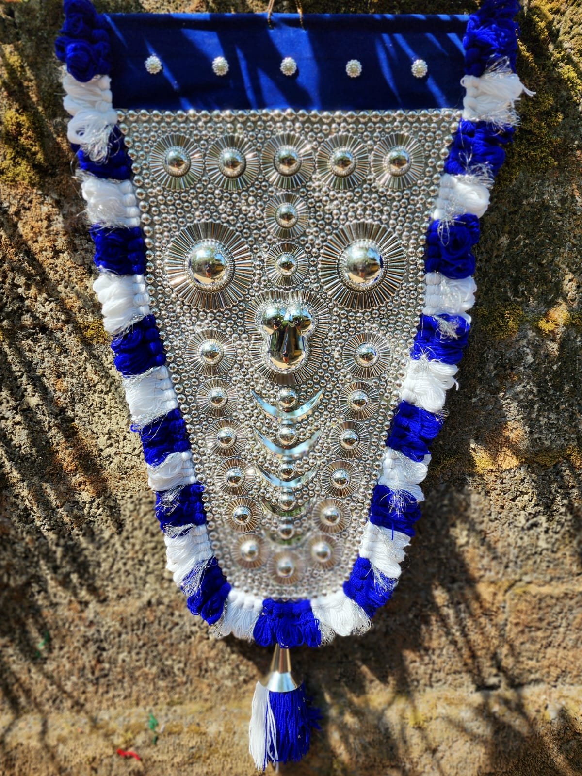 Mannar Craft Hand Made Nettipattam (Blue) With Silver Work-Elephant Caparison (blue) 2.5 Feet