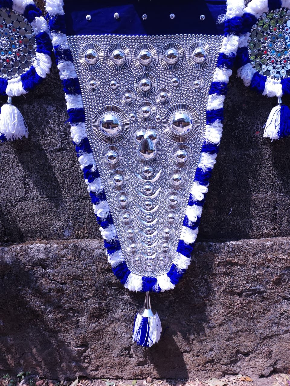Mannar Craft Hand Made Nettipattam (Blue) With Silver Work-Elephant Caparison (blue) 4 Feet