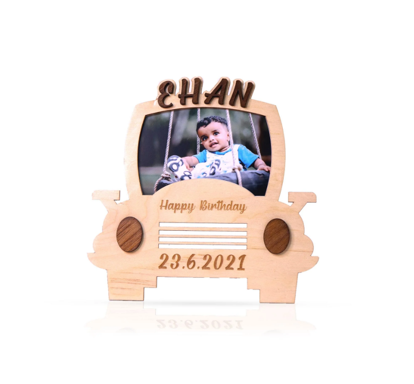 FEATURES Personalized Birthday Photo Frames Include 1 Photo. The birth date is printed. A small wooden stand is fixed which helps to hold the frame stable.
