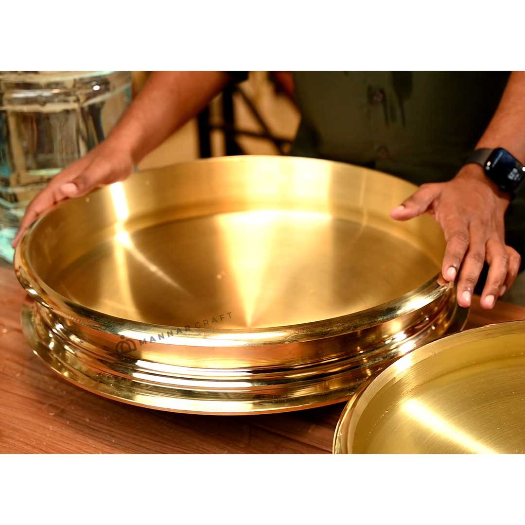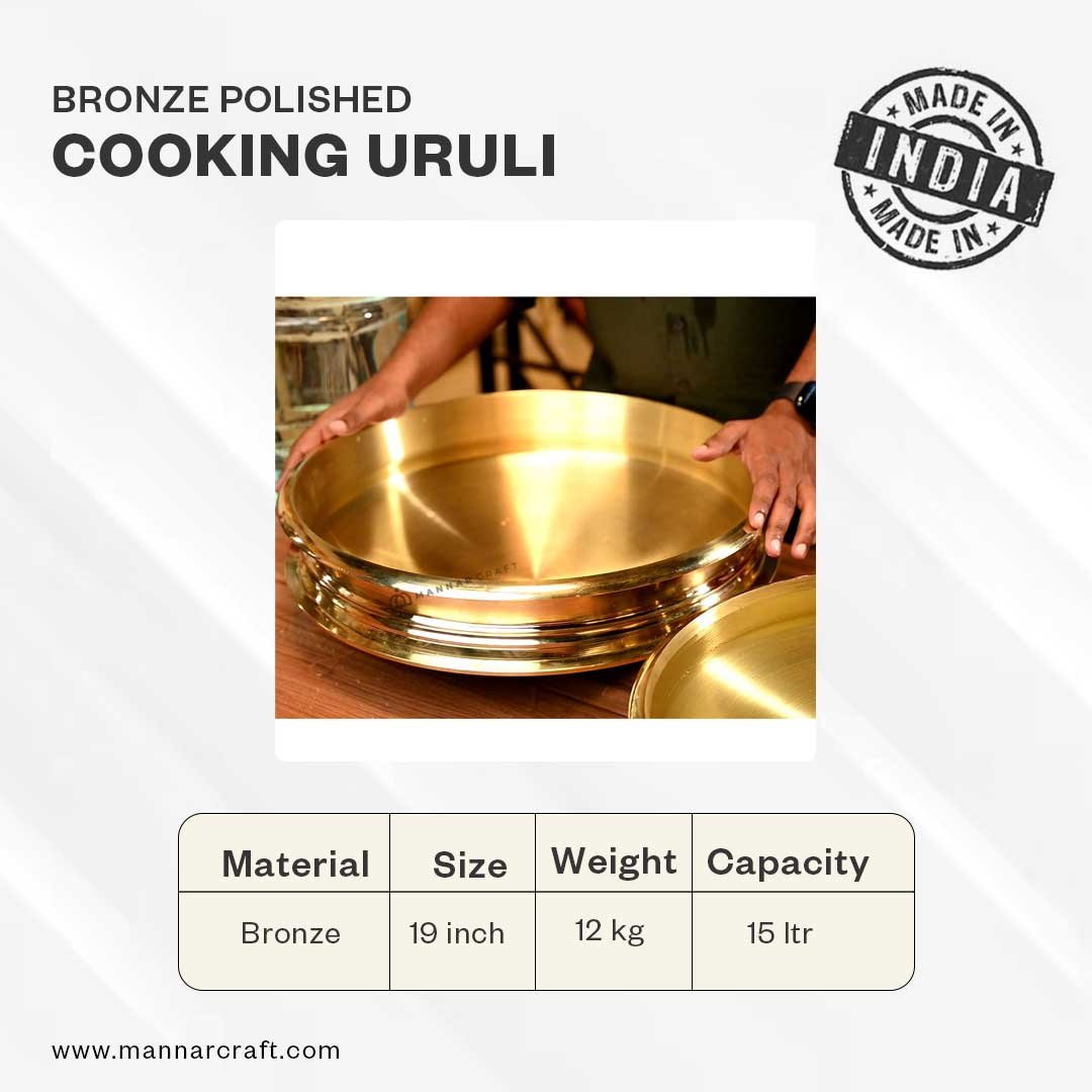 | Embrace tradition and enhance your culinary journey with the Mannar Craft Polished Bronze Cooking Uruli, a handcrafted masterpiece passed down through generations in Kerala. This polished bronze beauty, also known as Otturuli or Vengala Uruli, is not just a cooking vessel, it's a legacy waiting to be rekindled. |