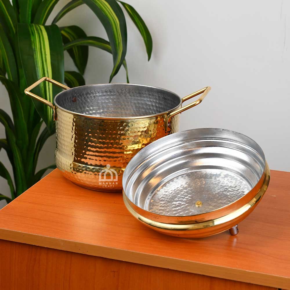 Cook idlis the traditional way with the Mannar Craft Premium Brass Idli Steamer – 3kg, a handcrafted masterpiece that combines heritage, durability, and health benefits. Designed from pure brass with food-safe tin lining, this idli cooker not only ensures soft, fluffy, authentic idlis but also retains the rich flavor of traditional South Indian cooking.