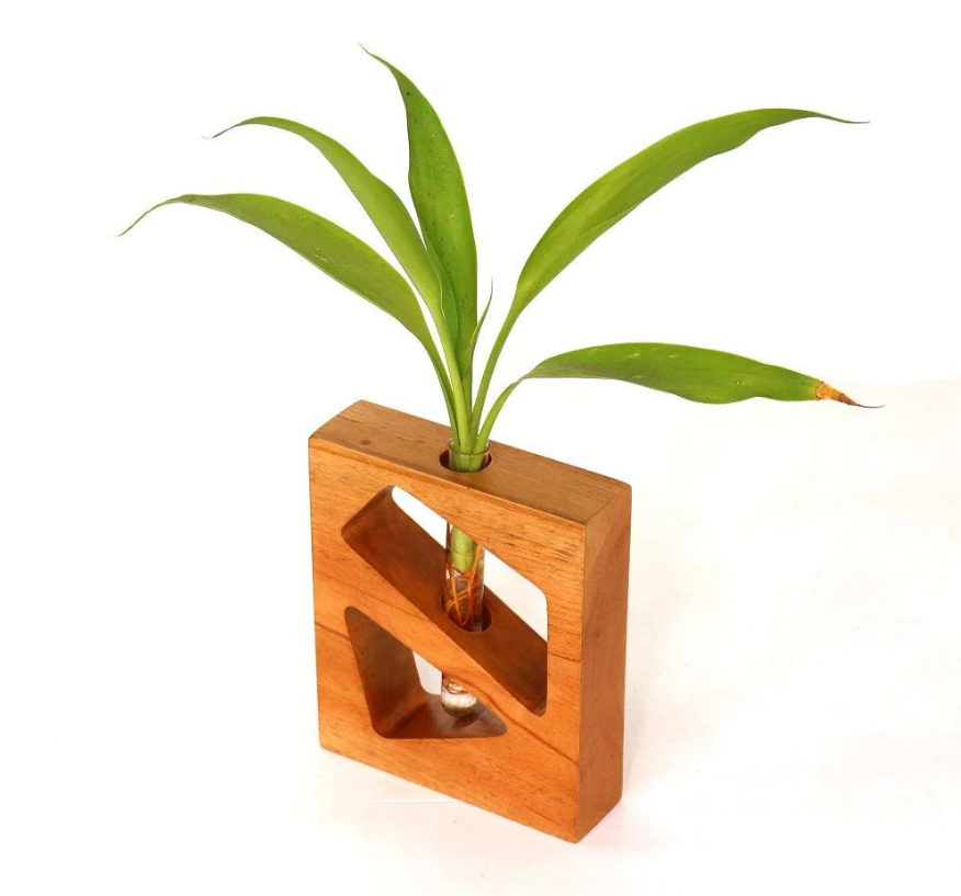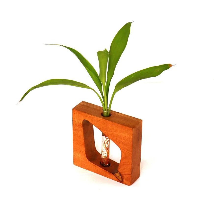 The package contains a wooden holder with a test tube to hold your plant. The wooden frame which holds the vase is stable and sturdy. The glass tube vase is also high quality which provides a good growing environment for your plant FEATURES material - Mahogany Shape.