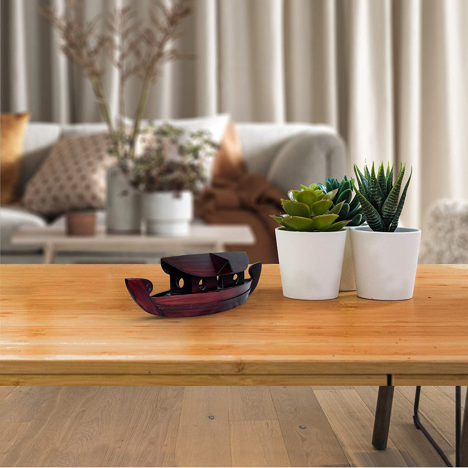 Bring home a piece of Kerala’s charm with the MC213 O/w Wooden Houseboat – Small. Expertly handcrafted from quality wood, this miniature houseboat model is perfect for home décor, souvenirs, or gifting. A beautiful reminder of traditional backwater life and craftsmanship.