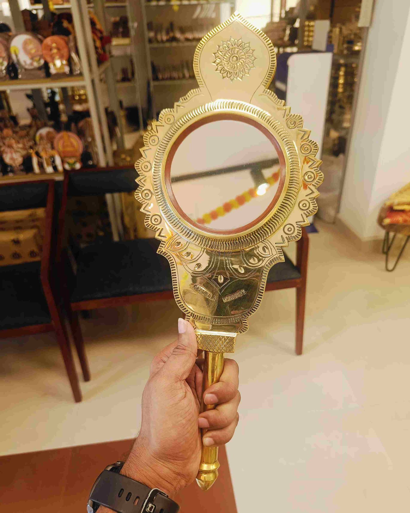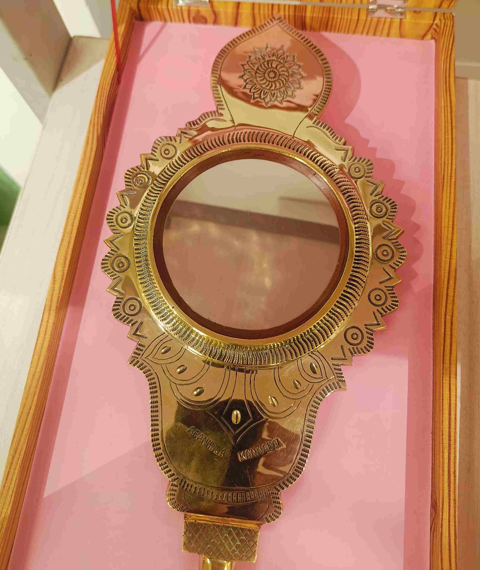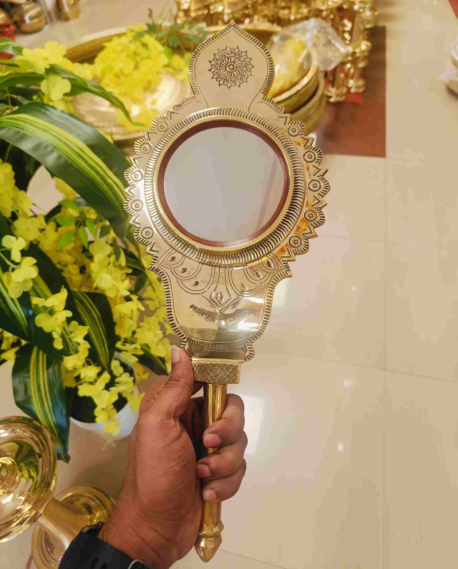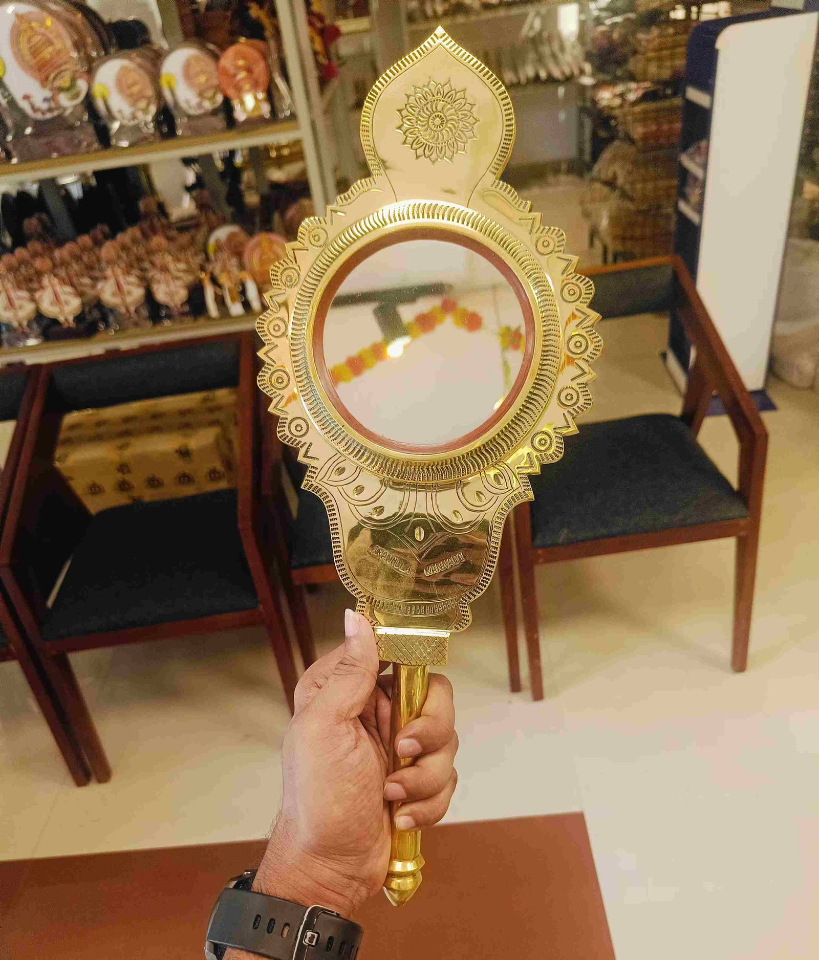 Experience the timeless beauty and cultural heritage of Kerala with this Original Handmade Aranmula VaalKannadi (4 inch). Crafted by skilled artisans using age-old techniques passed down through generations, this authentic metal mirror is made entirely of a unique metal alloy, not glass. Revered for its clarity and auspicious significance, the Aranmula Kannadi is a symbol of prosperity, tradition, and craftsmanship.